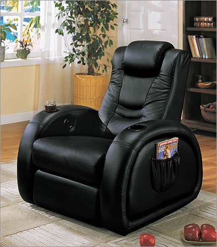 Encore Home Entertainment The Galaxy Double Arm Recliner Theater Seating provides a much more traditional approach to the home theater option. This is an individual home theater chair which can be used as an independent seat or can be placed together to create the appearance of a row of seats. Each chair features an adjustable head rest, personalized pitch, and 2 cupholders. The supple leathermatch cushions add to the traditional styling of the recliners while providing a comfortable, unique home theater setting. There is also a storage pocket which can hold magazines, remotes, or anything else you need close by for an added level of convienence. Features: -Available in black leathermatch -Vinyl back and sides -Quick release recline -Minimum distance from wall: 3"-5" -Reclined Length: 69" -Seat Dimensions: 42" H (from floor) x 37.75" W x 40.5" D Free In-Home Delivery and Setup - Details: White Glove Delivery is a premium service, different than a standard UPS, FedEx, or curbside truck delivery. The carrier takes a larger part in making sure the product you are purchasing makes it safely off of their truck and into your home. Service Includes: -Free In-Home Delivery, including up to 2 flights of stairs (4-15 steps = 1 flight) -Two-man delivery team to move items inside your residence to the room of your choice -Delivery team will unpack and provide basic setup that requires no tools (i.e. will set pieces next to each other, or on top of each other) -A $49 upgrade to White Glove Platinum is recommended for setup that may require basic tools (i.e. pieces will be screwed or bolted together) -Delivery team will also remove and dispose of all packaging 840D-BLK-BTV