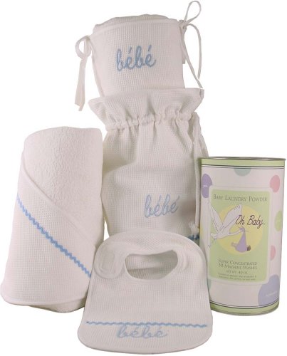 Beautiful High quality waffle weave and terry baby linens you will love to use. Set includes a waterproof bag (for diapering), a hooded towel, changing pad and bib with velcro. And we've included A package of Sweet Sheets Baby laundry detergent. All products are full size and not samples. A great and unsual gift for a baby shower, birthday etc