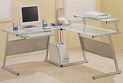 * The silver finish and frosted glass make this computer desk modern and stylish.