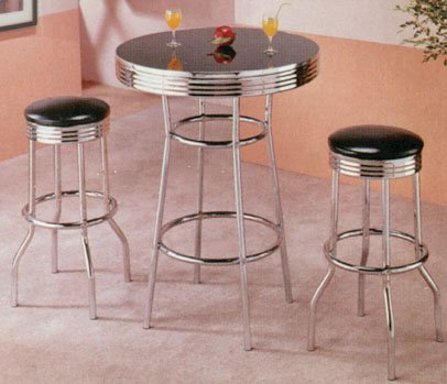 3 PIECE CHROME RETRO STYLE BAR TABLE SET - Table and 2 Stools