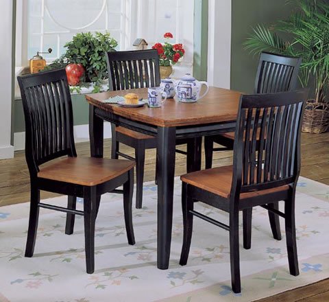 Dinette Table, 36"W x 36"D x 29"H - This beautiful dinette will be a welcome addition to a dining room or eating area of a kitchen. Enjoy the transitional styling that allows it to work with most decors. Great for two or four person dining. Finished in a antique black sand thru finish and a cherry solid shaped wood top. Some assembly required. Imported. (764JQ)