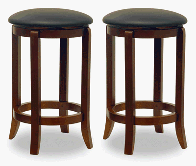 Set of 2 24" Black PVC Swivel Seat Stools. Comfy Faux leather seat. Warm walnut leg 24" with black PVC cushion. 2 pcs set. Let Furniture Detour be your one stop shop and distributor of high quality barstools and lifestyle furniture for the home. We have a full line of furnishings available.