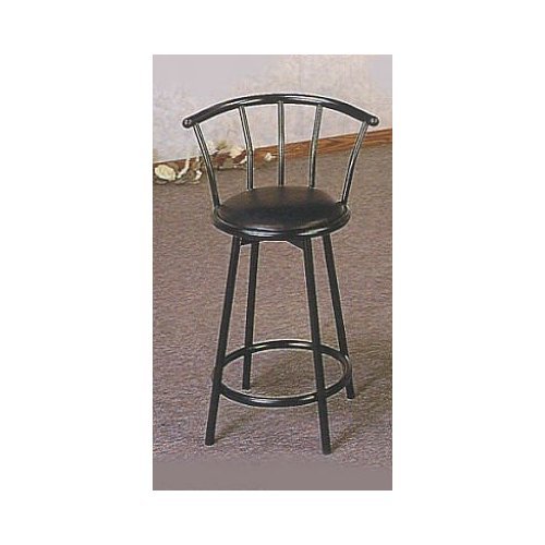Create a classic atmosphere in your kitchen or home bar with the Retro Black Swivel Chrome Barstool. This price is quoted for a set of two barstools. The seat itself comes 24"h above the ground, not including the Back panel. Dimensions for this item measures: 21 1/2"L x 17 3/4"W x 35 1/4"H (24" to the Seat); 14" Diameter Seat. Smooth swivel movement with retro style enhances your room and any decor. Perfect for bar table! Lowest factory direct price guarantee.
