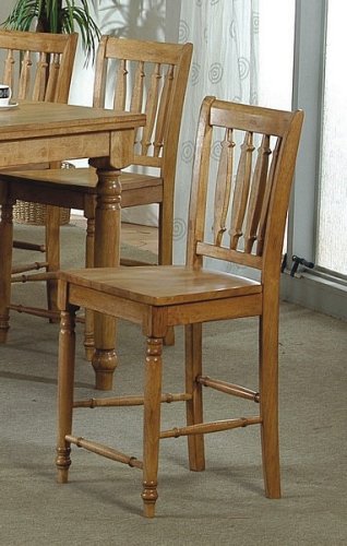 Set of 2 Medium Brown Finish Solid Wood Counter Height Chairs Bar Stools