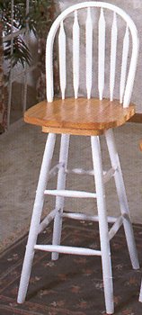 Arrow back white finish Windsor bar chair with swivel wood seat in natural/ white finish is the embodiment of elegance and style. Dimension: 29"H
