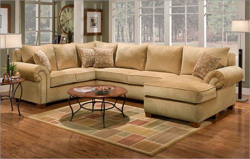 Simmons Upholstery Ebbtide Sectional The Ebbtide Full Sectional by Simmons Upholstery has the perfect balance of style and comfort. This set has a simple, classic design and durable hardwood frames that provide excellent support as well as offering plenty of room to accommodate everyone. Features: -Available in Cognac with Goldenrod and Cognac Toss Pillows -Hardwood frames and legs -Foam cushions with 100% densified polyester fiber wrap -Sinuous spring seating -Five year warranty on wooden frame parts and spring systems -One year warranty on cushioning, filling materials, fabric, leather and all other parts Free In-Home Delivery and Setup - Details: White Glove Delivery is a premium service, different than a standard UPS, FedEx, or curbside truck delivery. The carrier takes a larger part in making sure the product you are purchasing makes it safely off of their truck and into your home. Service Includes: -Free In-Home Delivery, including up to 2 flights of stairs (4-15 steps = 1 flight) -Two-man delivery team to move items inside your residence to the room of your choice -Delivery team will unpack and provide basic setup that requires no tools (i.e. will set pieces next to each other, or on top of each other) -A $49 upgrade to White Glove Platinum is recommended for setup that may require basic tools (i.e. pieces will be screwed or bolted together) -Delivery team will also remove and dispose of all packaging