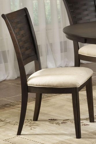 For a Fresh, Modern Look, Choose This Dining Chair Set Your dining area will finally feel complete once you own this set from the Oxmoor Collection. Each stylish chair features a lattice-inspired back design and comfy upholstery.Select our dining room furniture for the look, but keep it for the quality. With a sturdy hardwood construction and a classic walnut finish, it is made to last. Order today.