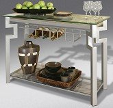 Mimosa Brunch. Influenced by the Art Deco style, with its use of angular geometric forms, the Wright collection server blends metal, wood inlays and glass for an inventive look. Modern, yet practical with its wine-holder and handy bottom shelf, this stylish server will make every occasion a celebration!